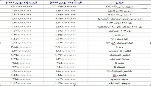 سایر محصولات مانند سورن پلاس فول، پژو ۲۰۷ موتور TU۳ و پژو ۲۰۷ دندهای پانوراما در این بازه زمانی بدون تغییر قیمت باقی ماندند که میتواند نشانهای از ثبات نسبی در بخش خودروهای پرتقاضای این شرکت باشد.
