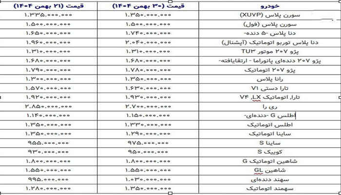 در معاملات امروز قیمت خودرو، بررسی قیمت محصولات دو خودروساز بزرگ کشور یعنی ایرانخودرو و سایپا نشان میدهد بازار در بازه زمانی ۲۱ تا ۳۰ بهمن ۱۴۰۴ با نوساناتی محدود اما معنادار همراه بوده است؛ نوساناتی که بیشتر در محصولات دندهای و برخی مدلهای اتوماتیک مشاهده میشود.