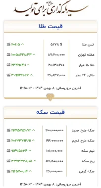 این بدان معناست که در یک شبانه‌روز، هر گرم طلای ۱۸ عیار مبلغ ۱,۸۳۴,۴۰۰ تومان افزایش قیمت داشته است. روند صعودی قیمت‌ها در روزهای اخیر کاملاً مشهود است، به طوری که در روز قبل از آن (۷ بهمن) نیز قیمت هر گرم نسبت به روز ماقبل خود ۱,۱۸۸,۴۰۰ تومان (۶.۵ درصد) رشد کرده و به ۱۸,۲۷۲,۵۰۰ تومان رسیده بود. دو روز پیش (۶ بهمن) قیمت هر گرم طلای ۱۸ عیار ۱۷,۰۸۴,۱۰۰ تومان اعلام شده بود که نسبت به روز قبل از خود ۳۲۳,۶۳۱ تومان (۱.۸۹ درصد) افزایش نشان می‌داد.