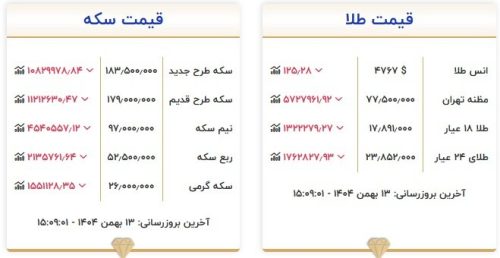 قیمت طلا و سکه امروز ۱۳ بهمن؛ سکه ۱۰ میلیون تومان ریخت